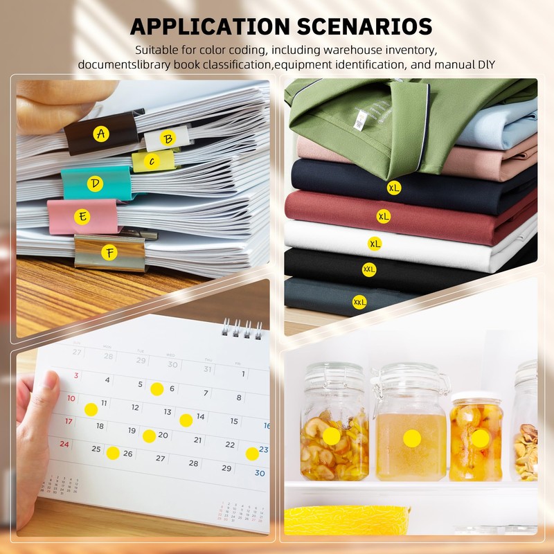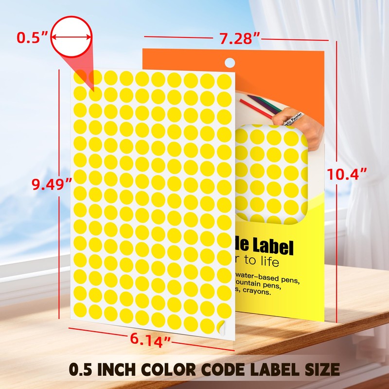 - Yellow Dots Stickers 1/2” Diameter:Small blank round stickers for precision and small-scale labeling tasks