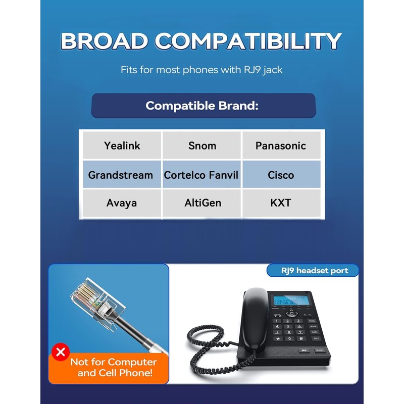 - CRYSTAL CLEAR CHAT: Wideband Sound RJ9 Telephone Headset with microphone compatible with Yealink Avaya landline phones enables excellent sound quality for natural listening experience, features Noise Cancelling Microphone to reduce background noise, Acoustic Shock Protection Circuit to protect your hearing.