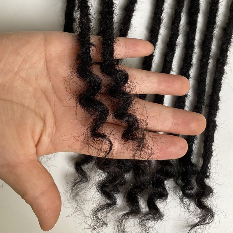 - 1.Hair Material: 100% Handmade Permanent Loc Extensions 0.4cm ,1B natural black.Full Handmade Human Hair Loc extensions.can be dyed, curly ends make styling more versatile, soft and comfortable, easy to take care of, light weight, no odor, beautiful hair, natural appearance, lasts a long time.