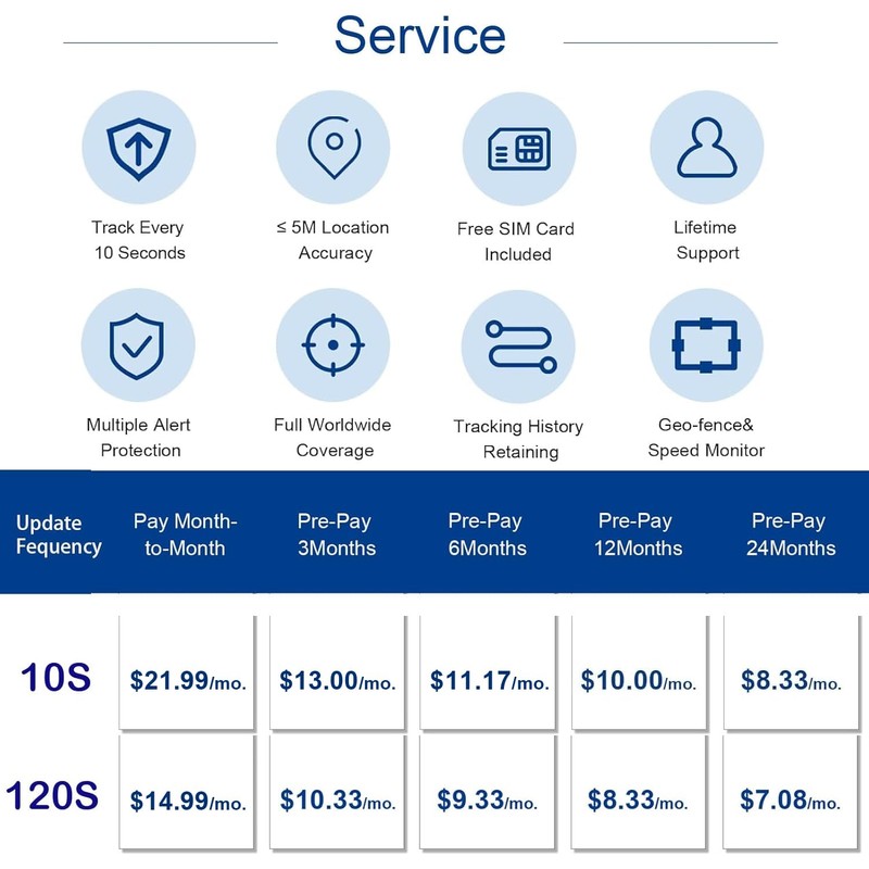 - Affordable Subscription: Our gps tracker subscription fee is lower than others, the monthly fee is $14.99, and the long-term prepayment is as low as $7.08/month