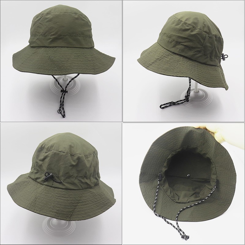 - Even though during the windy or rainy days, the 37cm thicker and longer windproof rope can hold the hat firmly on your head without strangling your neck. The safari boonie hat is perfect for travelling, hiking, gardening, fishing and other outdoor activities.