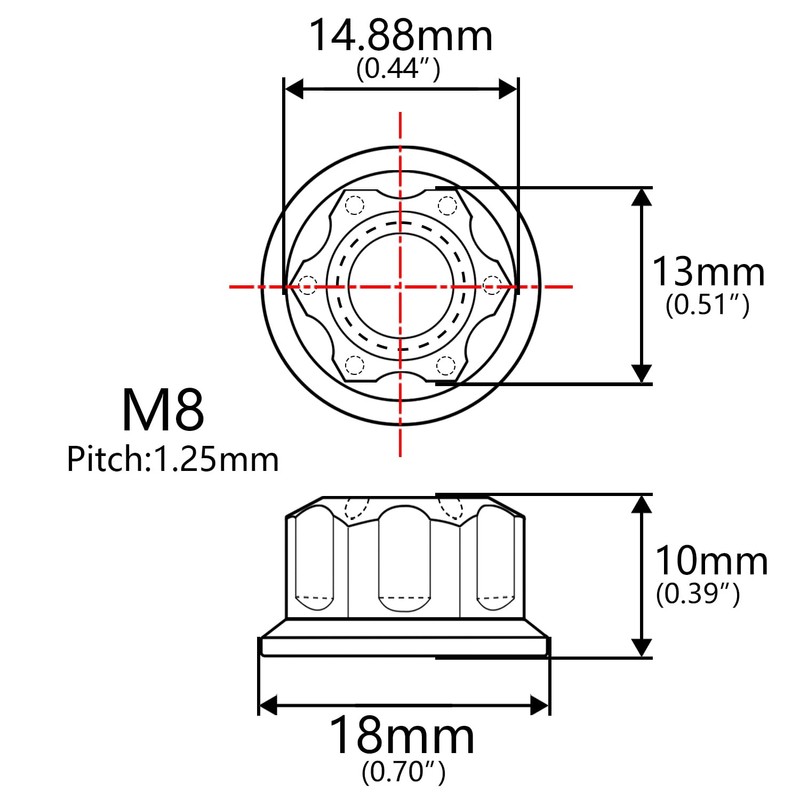 - Nut diameter: 18mm/0.71", Nut height:10.1mm/0.4"