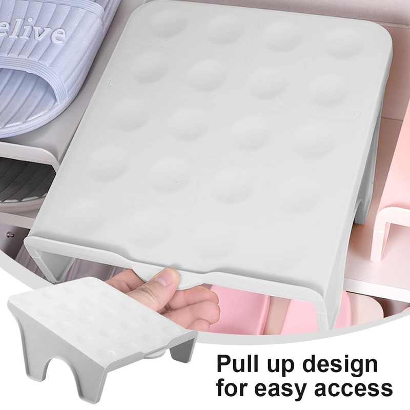 • VERSATILE SHOE STORAGE - Suitable for all shoe types. The shoe stacker organiser is suitable for trainers, high heels, sandals, slippers and even children's boots. Textured surface prevents slipping and keeps each pair securely in place