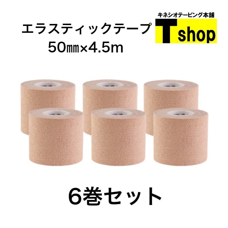 Wapex Elastic Tape Ideal for Securing Joints, Taping, Width 2.0 inches (50 mm) x Length 1.7 ft (4.5 m) (6 Rolls), Beige