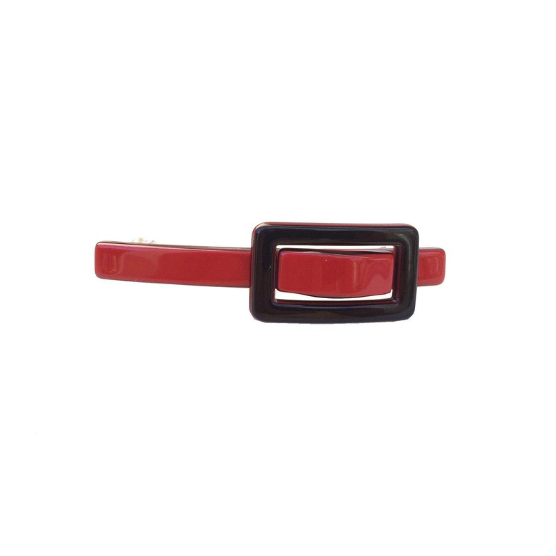 Wardani, tortoiseshell french clip barrette, small buckle rectangle shape handmade in France 2 tone 555 (Red)