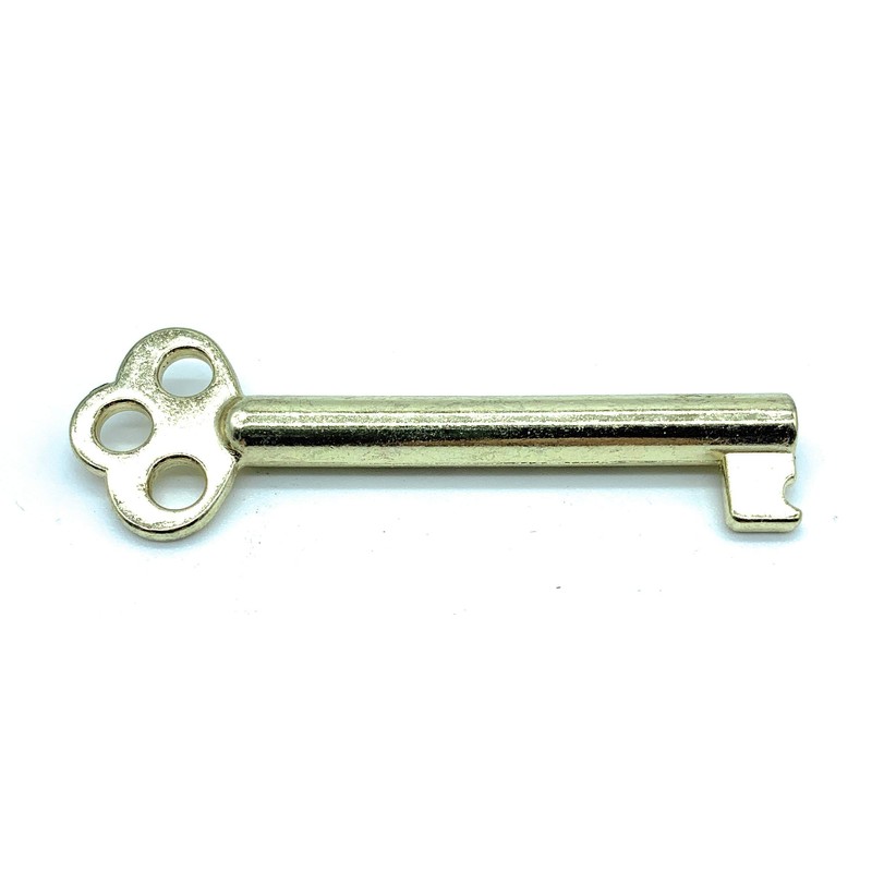 The steel key has a coated surface by electro brass-plating to give it an antique look.