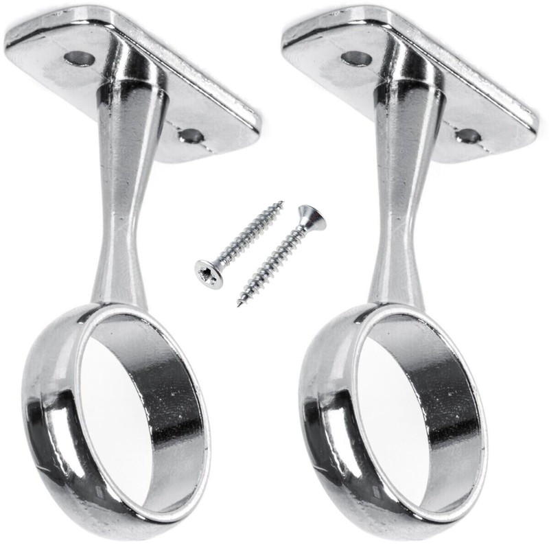 Wardrobe Rail Centre Supports Brackets 19mm Chrome Plated Round Wardrobe Rail Centre Support Bracket Flange Socket for Ceiling Wardrobe 2 Pack with Screws.