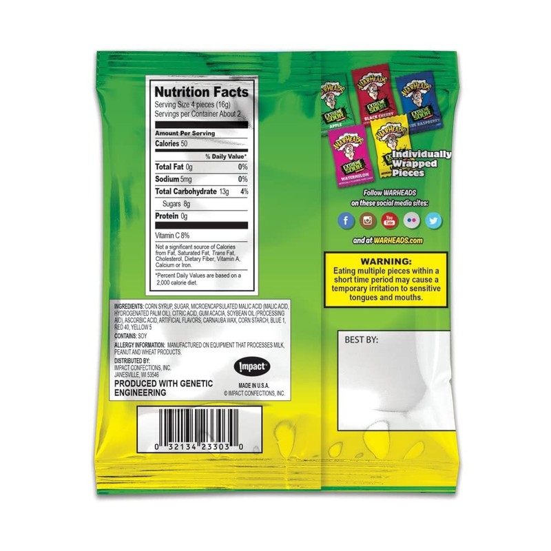 - WARHEADS EXTREME SOUR HARD CANDY 1 oz Each ( 12 in a Pack )