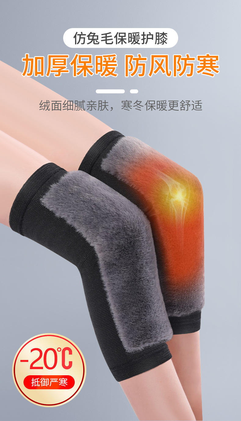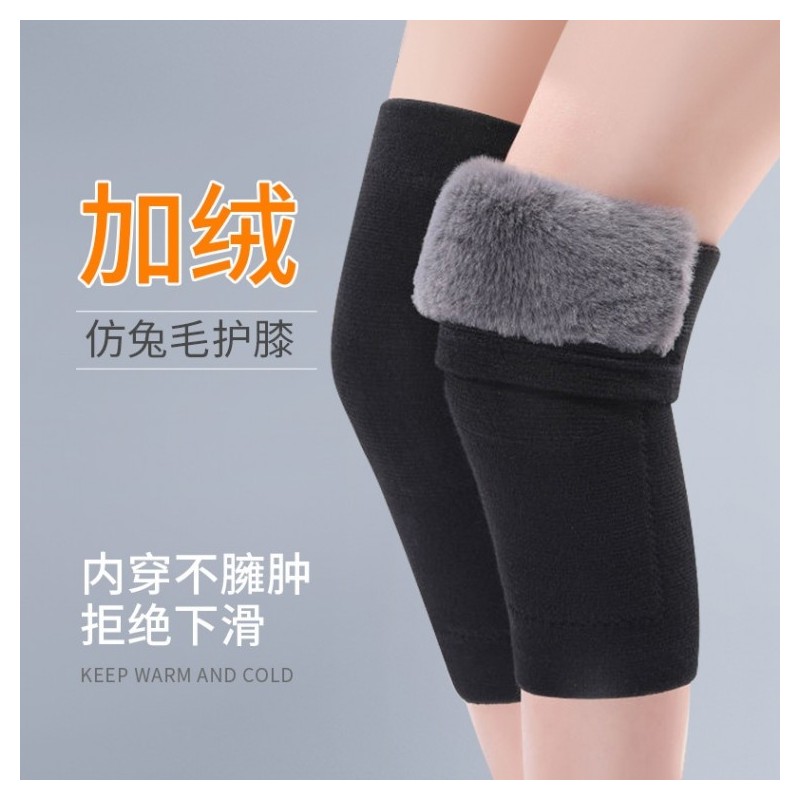 Warm Brushed Leg & Knee Protector for Exercise - Thick Winter Rabbit Fur Thermal Knee Support Thermal L/Grey 3ea