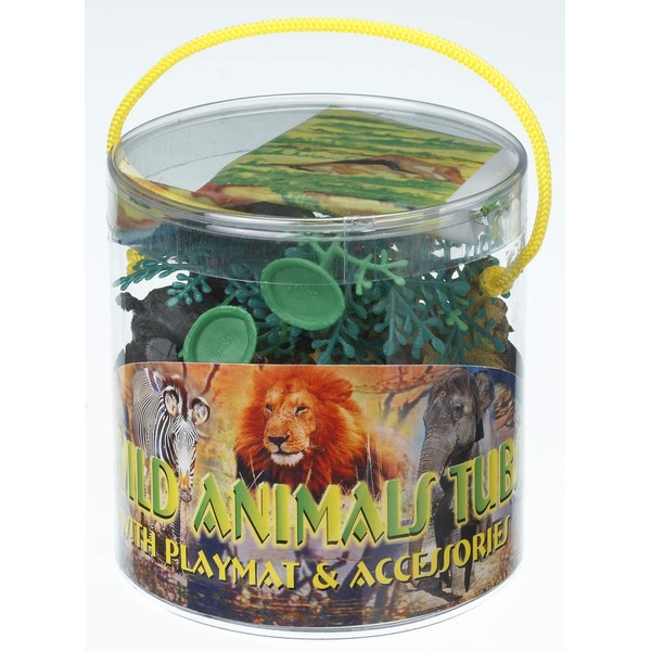Tubs filled with assorted fun toys including animals, rocks or trees, and a playmat! Plastic mat is 17" x 12". Tub is 4.5" tall x 4.25" diameter. For Ages 3 and Up!