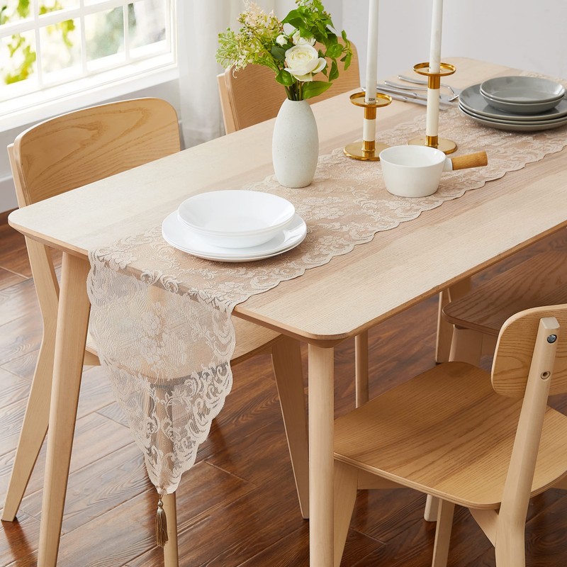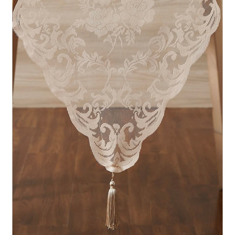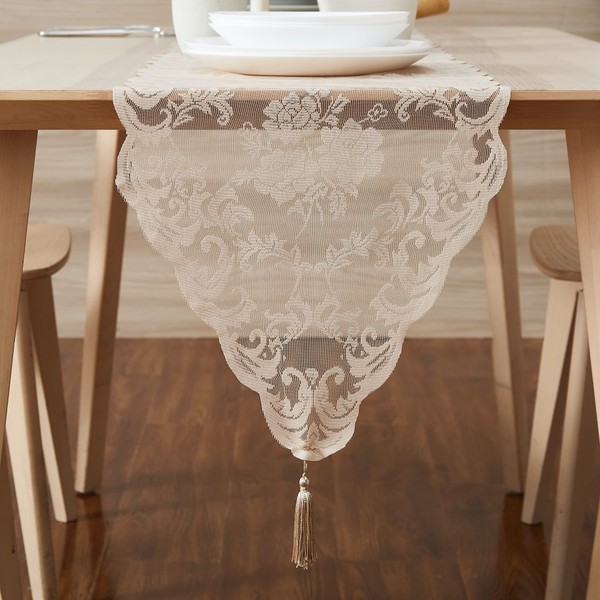 WARM HOME DESIGNS Thanksgiving Table Runner. Short Length 14 x 36 Linen Table Runner. Lace Table Runner Features Rose Design & 2 Attached Tassels. Wedding Table Runner from Lace Fabric. MTR Linen 36"