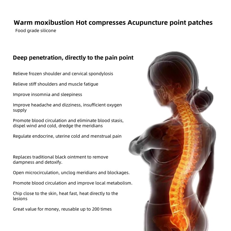- Advantages No need to charge, automatic heating, constant temperature and lasting, will gradually release comfortable heat to ensure firmness and comfort, can be reused 200 times. This product is round and 4.33 inches in diameter, it can meet the daily needs of the affected area, suitable for many parts of the body. The heat compress patch has the ability to relieve pain, relieve ring stiffness parts, uterine cold, etc. Unblock the meridians and promote blood circulation.