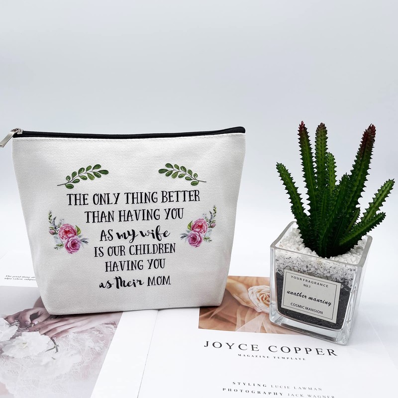 - Perfect Gift: A beautiful makeup bag, with such a gorgeous pattern & heartfelt wording on. The printed funny saying“The Only Thing Better Than Having you as My wife is our Children Have You as Their Mom”. Lovely & thoughtful gift for special one, remind those closest to you of how much they mean to you.