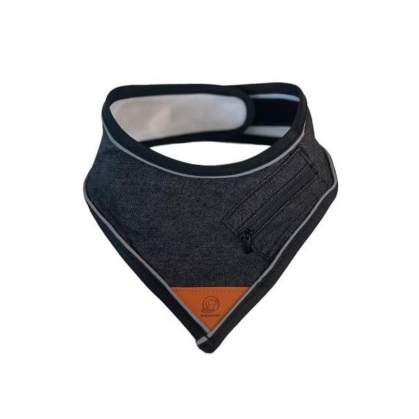 WARMPUPS Dog Bandana Winter Denim Jean Polar Fleece Reflective Pocket Hook and Loop Warm Durable Strong Stylish Adjustable Size (Medium)