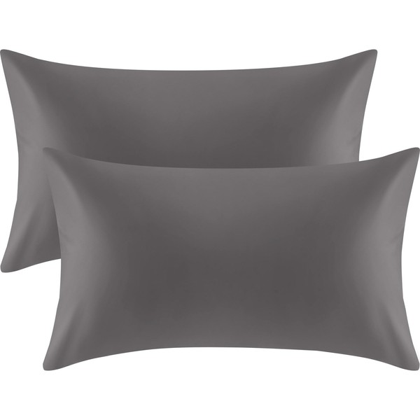 Warmstar 100% Organic Cotton Pillow Cases Set of 2, Pillow Cases Standard Size Satin Weave Soft Hypoallergenic GOTS Certified Pillowcases Breathable Envelope Pillowcass,20x26 Inches,Dark Grey