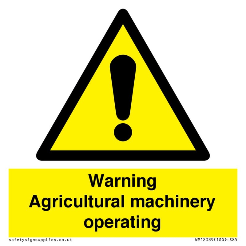 Warning Agricultural machinery operating Sign - 85x85mm - S85