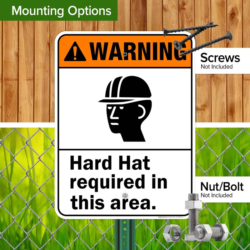 Warning Hard Hat Required In This Area ANSI Sign, 18x24 Inches, Rust Free .063 Aluminum, Fade Resistant, Made in USA by My Sign Center