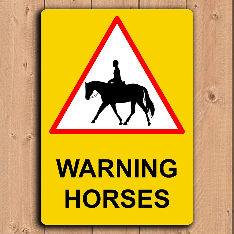 Warning Horses Safety Sign Aluminium Rustproof Livery Yard Riding school. Stable door
