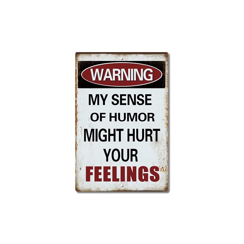 Warning My Sense of Humor Might Hurt Your Feelings! ¨C Funny Aluminum Metal Sign for Your Garage, Man cave, Yard or Wall,12 x 8 Inches