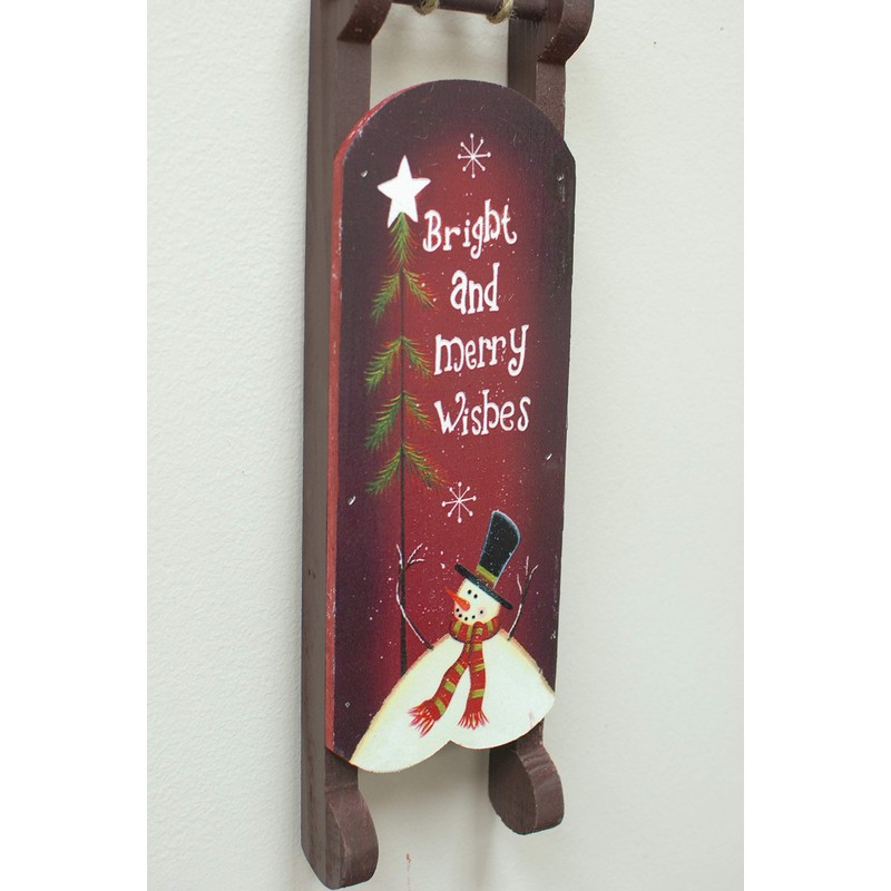 Waroom Home Wood Holiday Wonder Hanging Sled with Snowman Christmas Decoration Wall Hanging Sleigh Decor Christmas Tree Hanging Ornaments Set of 3 (Large)