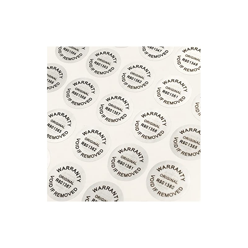 - Silver 15mm round "WARRANTY VOID IF REMOVED" stickers.