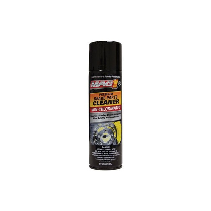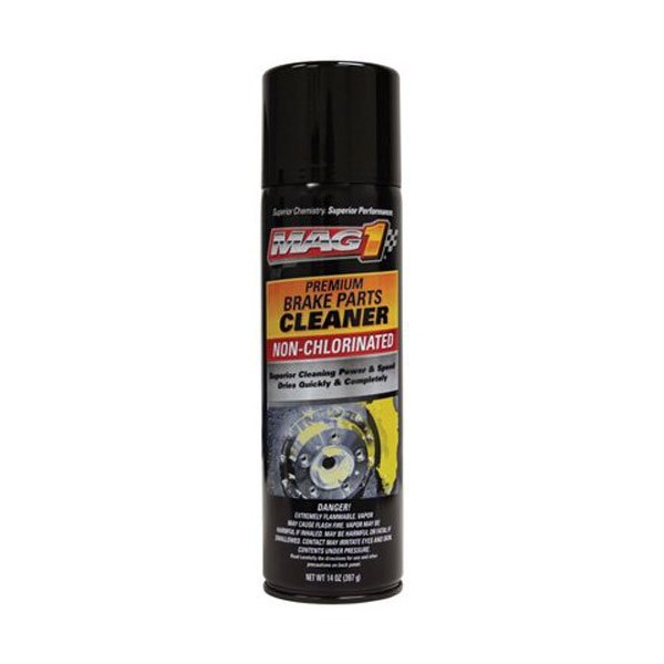 - Mag 1, 14 oz, premium chlorinated brake parts cleaner, removes brake fluid, grease, oil & other contaminants from brake linings & drums