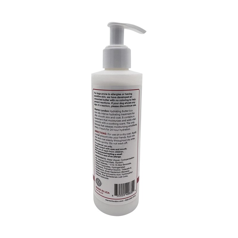 - Unscented For Sensitive Skin - The Unscented formula of our Hydrating Butter contains no added artificial fragrance or color, and has just a mild smell from the aloe and other botanical ingredients in the formula. This is our best dog conditioner for allergies and itching.