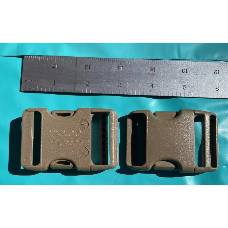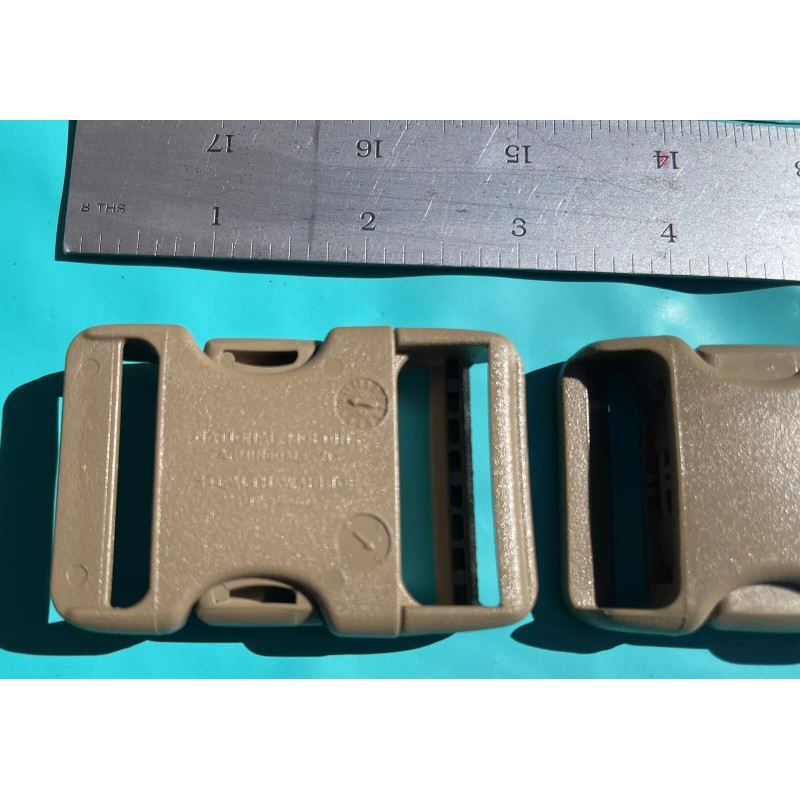 This 1.5" (38mm) Warrior Standard quick release buckle is a must-have for any desert tan crafting or sewing project. Made in the United States, this pack/set of two pieces is a genuine military issue, ensuring high quality and durability.