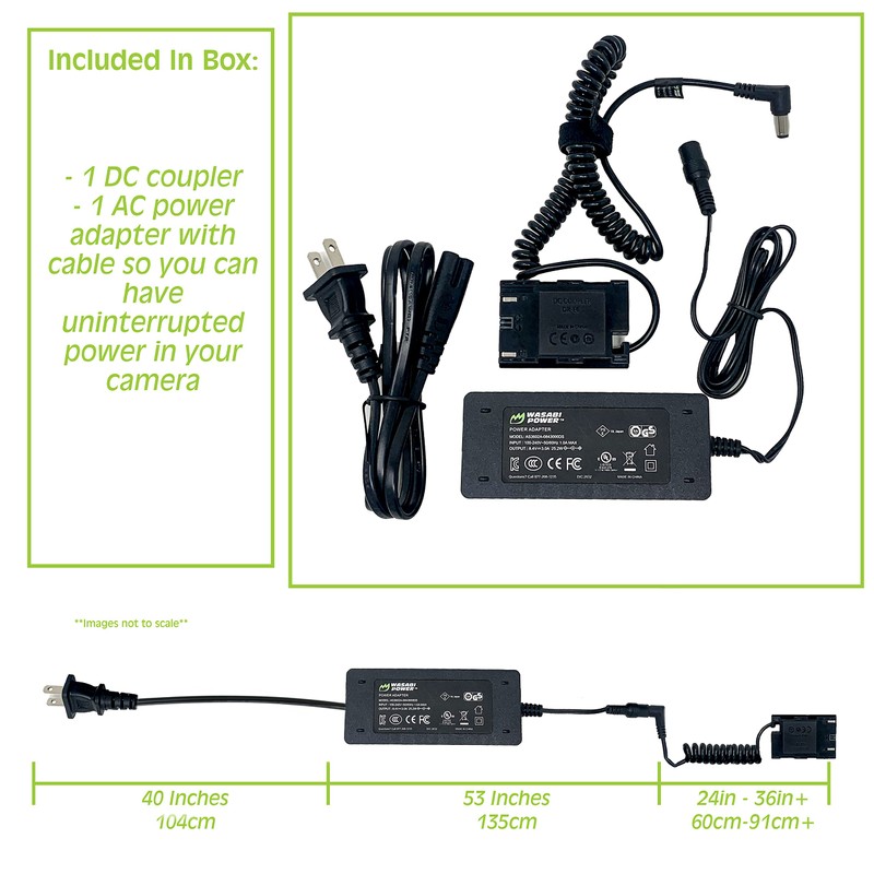 - INCLUDES - 1 DC coupler and 1 AC power adapter with cable so you can have uninterrupted power in your camera
