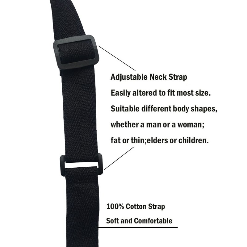 - Adjustable neck strap with black ties,The adjustable Neck strap design, It can be adjusted quickly for people of different heights, making it easier to wear.