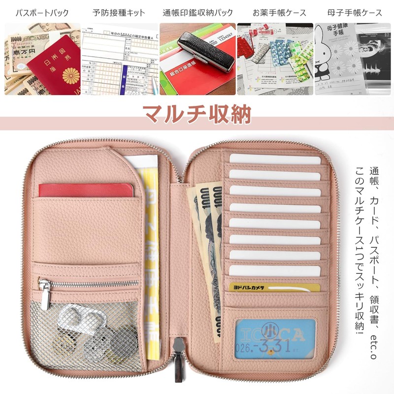 Wasenn Maternal and Child Handbook Case, Medicine Notebook, Examination Ticket Case, Multi-functional, Lightweight, Passbook, Insurance Card Compatible, Cash Card, Drawstring Included, Pink
