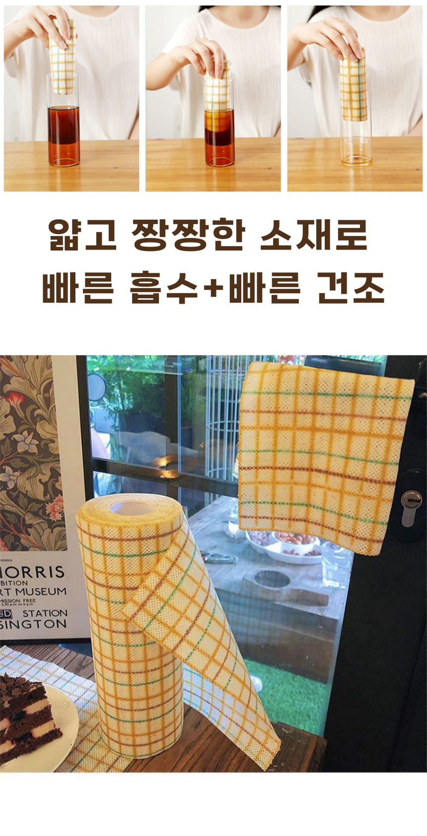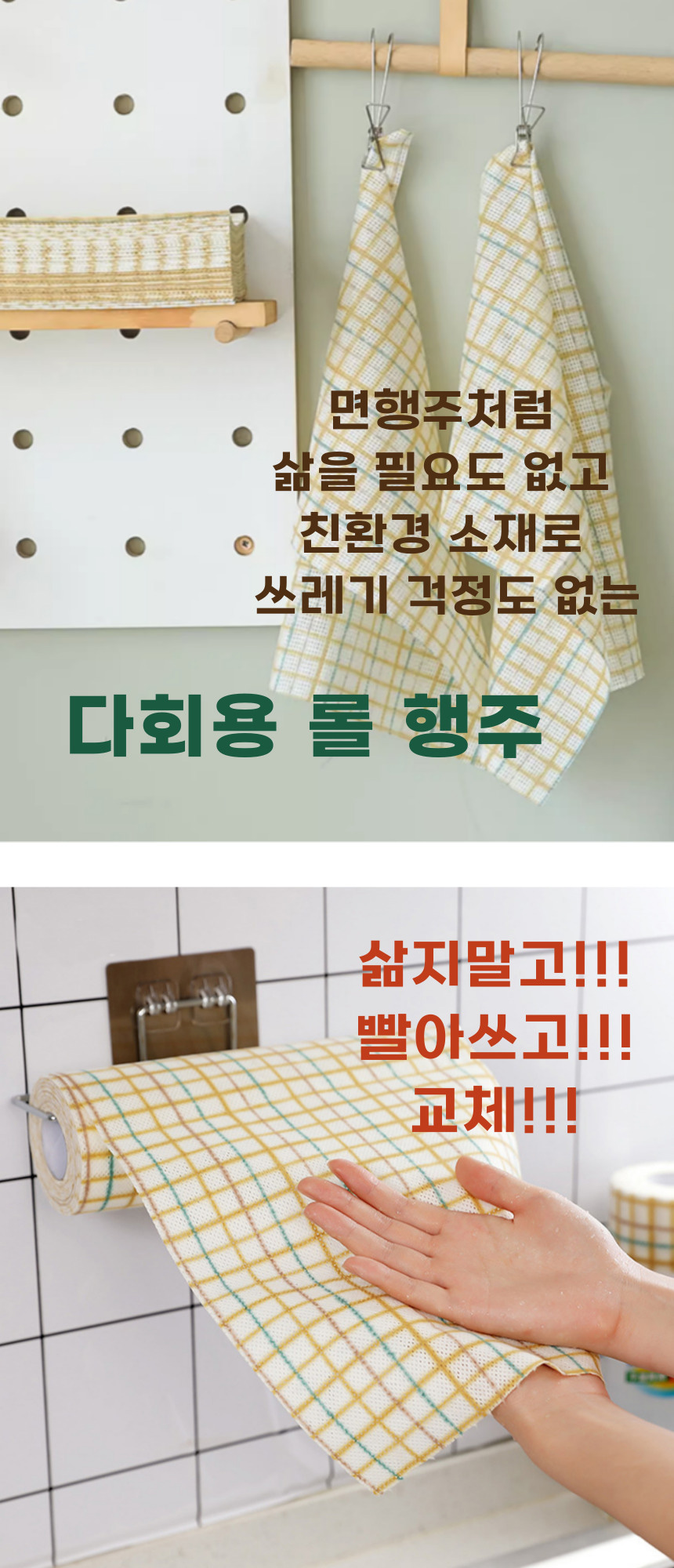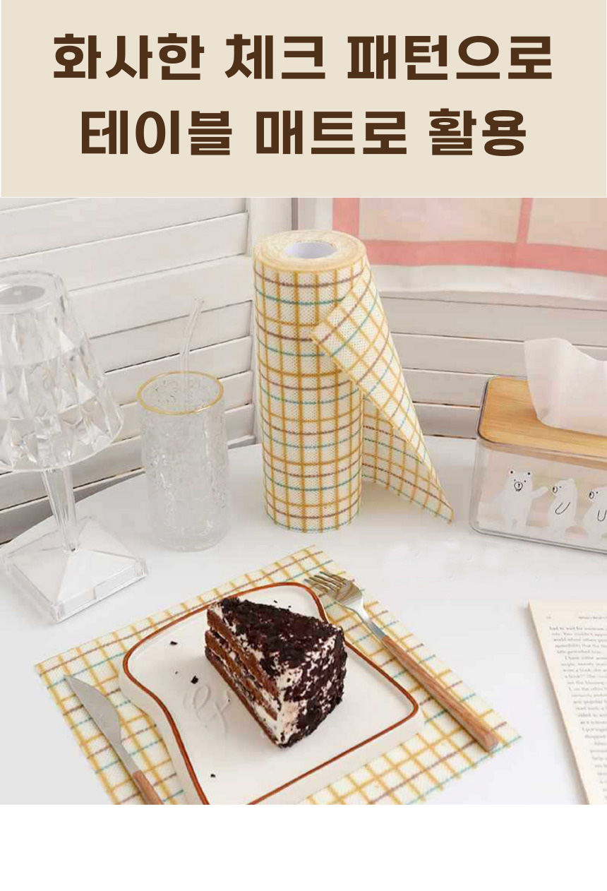 Washable disposable dishcloth, kitchen towel, tissue, eco-friendly non-woven roll dishcloth, 40 sheets, check / 빨아쓰는 일회용 행주 키친 타올 티슈 친환경 부직포 롤행주 40매 , 체크
