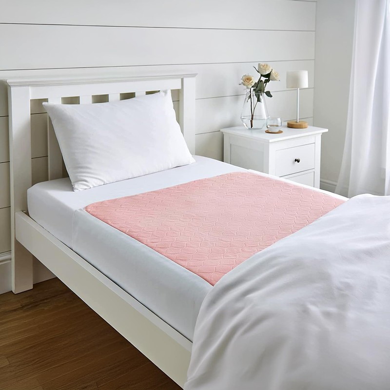 Washable Incontinence Bed Pad Reuseable Protection Sheet with Tucks 90cm x 75cm Waterproof Backing 2 Litre Capacity Pink