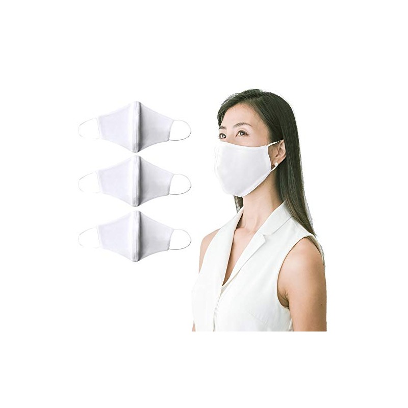 Washable Mask, Pack of 3, Antibacterial, Nano Coating, UV Protection, For Adults, 3 Layers, White, 70 Reminiscent Masks