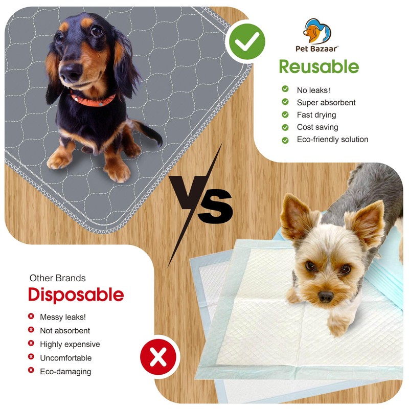 Washable Puppy Pads - Reusable Dog Pee Pads, Waterproof Non Slip Training Mats for Small Dogs, Crates, Travel, House Training, Incontinence, Puppies, Cats, Rabbits, 60 x 45cm