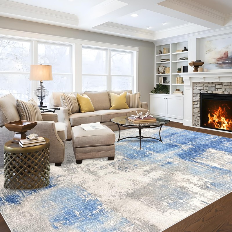 Washable Rug 6x9 Area Rugs: Abstract Rugs for Living Room Soft Non-Slip Machine Washable Area Rug Foldable Non Shedding Indoor Low Pile Carpet for Bedroom Dining Room Nursery Office-Blue Rug 6x9