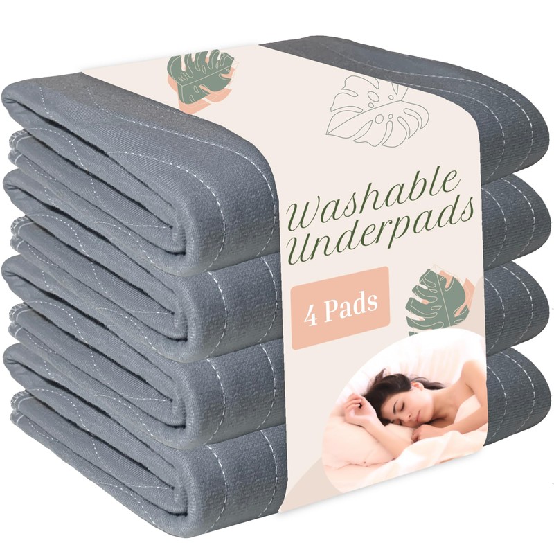 Washable Underpads 31" x 36" (Pack of 4) Incontinence Bed Pads, for Kids, Adults, Elderly and Pets, Heavy Absorbency, Waterproof, Reusable