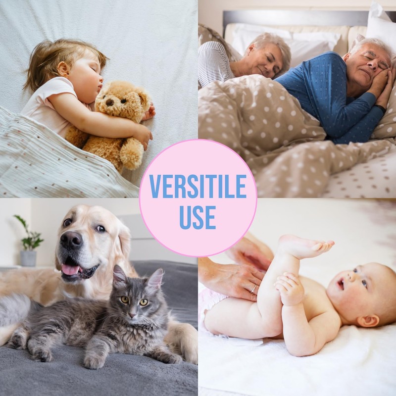 - VERSATILE USE: Suitable for both humans and pets. Ideal for toddlers, adults, elderly, and women and provides incontinence support. Protects bed, wheelchairs, chairs, couches.