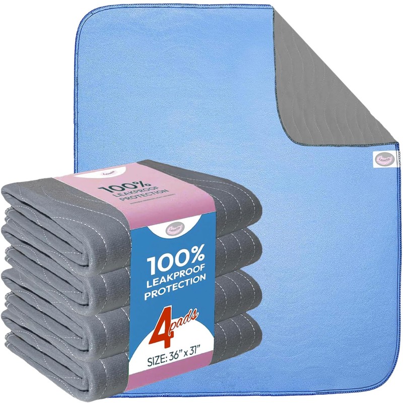 Washable Underpads 4 Pack - Large Bed Pads, 31" x 36", for use as Incontinence Bed Pads, Heavy Absorbency Waterproof