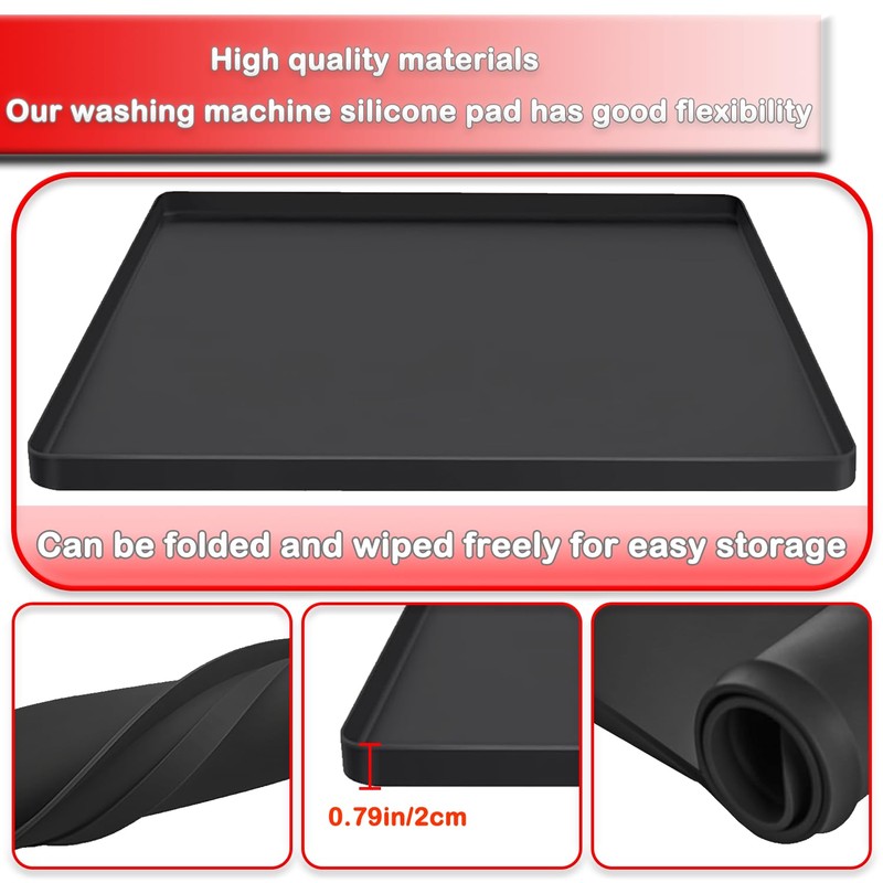 - High Quality Silicone: Our Washing machine silicone pad mat has good flexibility, can be folded and rubbed at will for easy storage. Silicone material is heat-resistant, even in high temperature conditions can ensure intact. it can fit perfectly on the bottom of the washing machine, and can also be used as a storage tray for various items