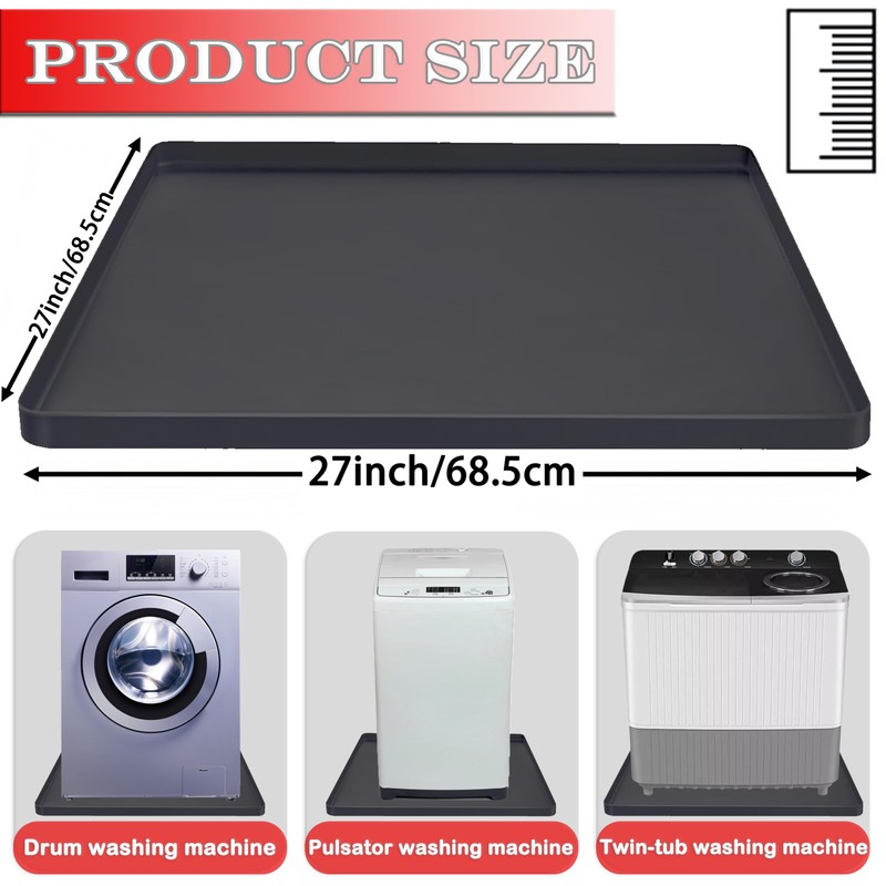 - Anti-Vibration & Non-Slip Design: The washing machine mat is a non-slip and waterproof backing, prevents water or other liquids from flowing on the floor. Our silicone washing machine tray absorbs vibrations and reduces noise during operation. Its non-slip bottom prevents washer movement and protects floors from scratches and damage