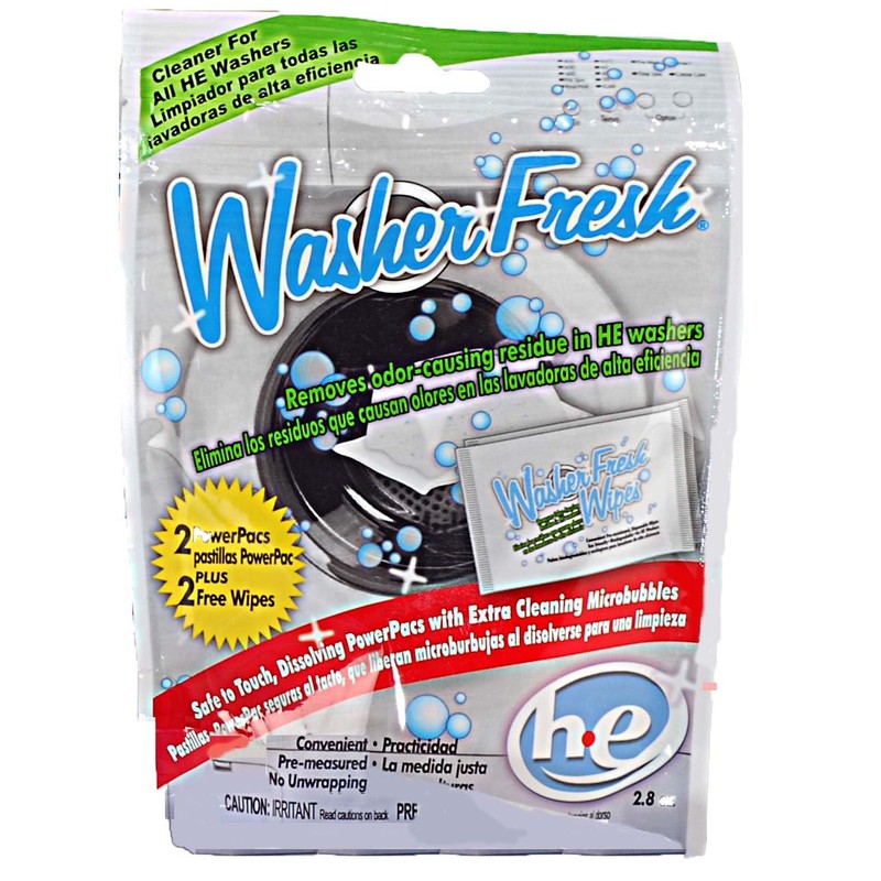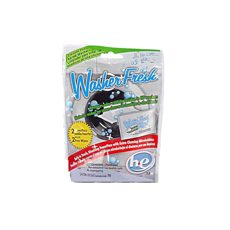 - WIPES: Washer fresh wipes to clean rubber door seal, glass, detergent tray, and dispenser