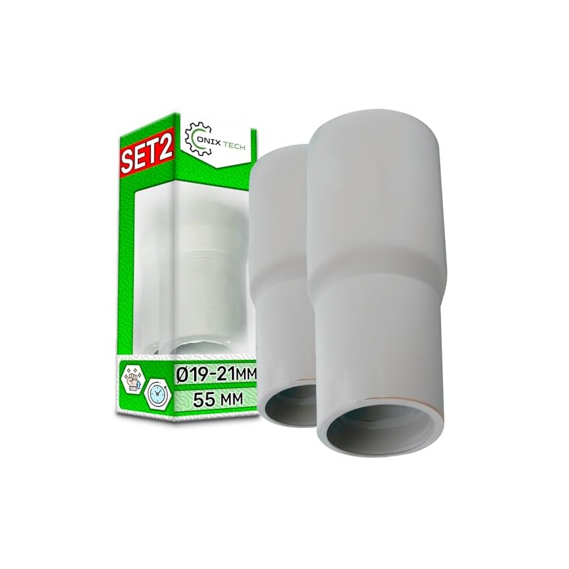 - Features: adapter made of robust plastic, with a diameter of 19-21 mm and a length of 55 mm, suitable for connecting drain hoses of washing machines or dishwashers