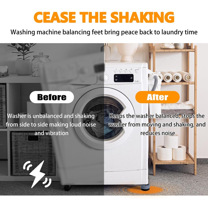 - Easy to install: our washer vibration pads Installation is quick and easy, simply tilt the unit to one side, slide our non-slip cushion under each raised foot, then place the unit's foot on the cushion and repeat on the other side.
