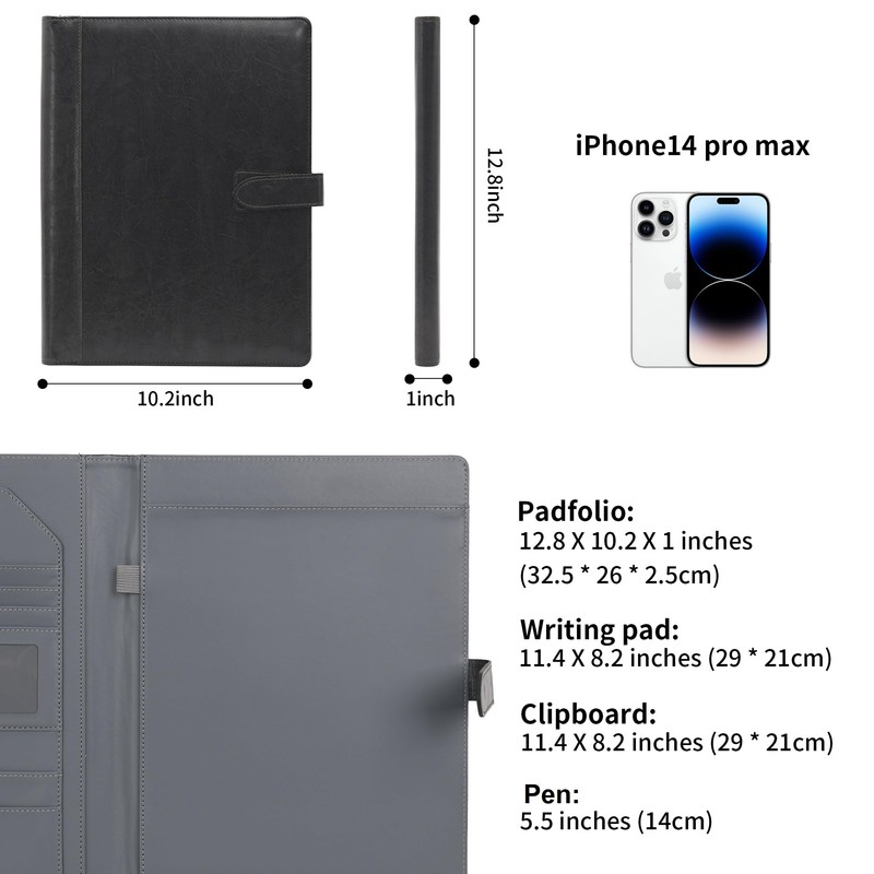 - PRACTICAL ACCESSORIES -- This portfolio comes complete with a pen, a removable clipboard and 50-page writing pad, featuring 100 GSM thick low-eye paper. With a removable clipboard, writing pad and pen included, you can conveniently collect and write notes during meetings, interviews, and lectures at work or school.