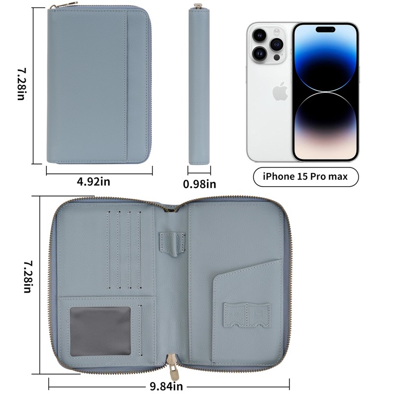 WASON Leder Reisepass Brieftasche mit Reißverschluss RFID Blocker Schutzhülle, Passport Etui mit Fächern für Karten, Bargeld, Ausweis, Bordkarte und Tickets für Reisen (Blau)