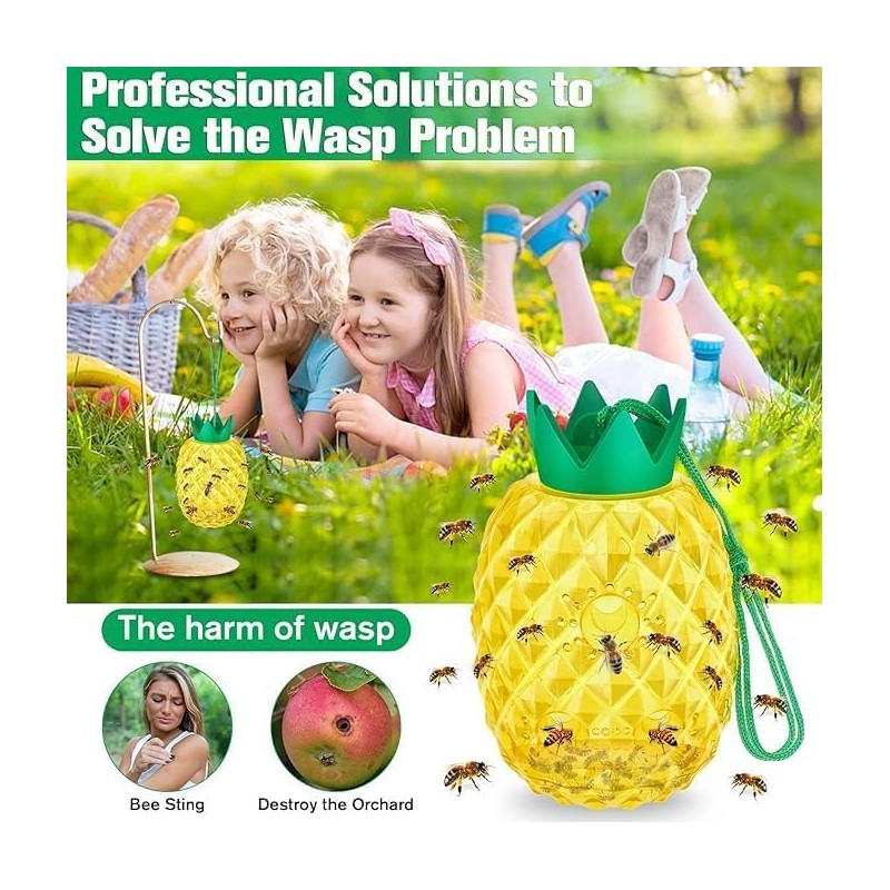 Are You Still Bothered by Wasps? 🐝Have You Ever Encountered Wasps Nesting Near Your Home? If you also want to get rid of wasps completely, the wasp trap is highly recommended. How Does Wasp Killer Work? -Just add wasp attractants to the Honey bee trap -The wasp trap has many small holes that emit a scent to attract wasps -There are 6 large inlets, designed with a large inlet and a small outlet, once the wasp is trapped, it will not be able to escape -Clean wasp deterrents regularly and replace them with new attractants Wasp Traps for Outdoors Features: 1. Unique Design-the wasp killers are innovative pineapple shape, bright yellow color and detachable structure 2. Environmental Protection Material-the materials of the bee traps for outside hanging are ABS plastic, non-toxic, can be reused, and have no threat to children and pets. 3. Easy to Use-add honey, fruit juice or sugar to the yellow jacket traps, and wait for the wasps to be fooled 4. Waterproof and Reusable-wash the hornet traps with soapy water after use, the material is high quality and can be used for a long time 5. Hanging Anywhere-18" green nylon rope is attached, which is light in weight and can be hung outdoors easily. It is recommended to hang the wasp traps for outdoors in the place where you and your family entertain, work and rest at a distance of 10 feet. About Wasp Traps: Material: ABS plastic Weight: 165g Dimensions: 3.6 in*5.3 in Color: Yellow Wasp Trap Repellent Outdoor Package Includes: Pineapple Shape Wasp Trap*2 Attractants*2
