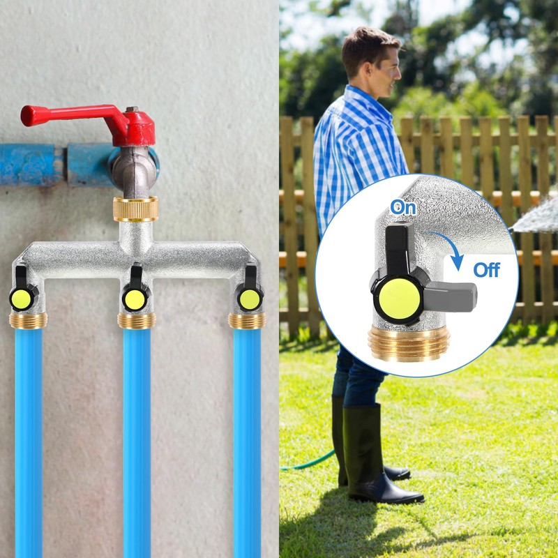 • 【Wasserhahnverteiler 】Unser schlauchverteiler hat einen verlängerten Griff für ergonomischen Komfort und einfache Bedienung, und erweitert den Abstand zwischen den drei Ausläufen, um drei Bewässerungszeitgeber gleichzeitig zu ermöglichen. Jede Zapfstelle hat eine eigene Ventilsteuerung, die nach Bedarf arbeitet und sich nicht gegenseitig behindert.