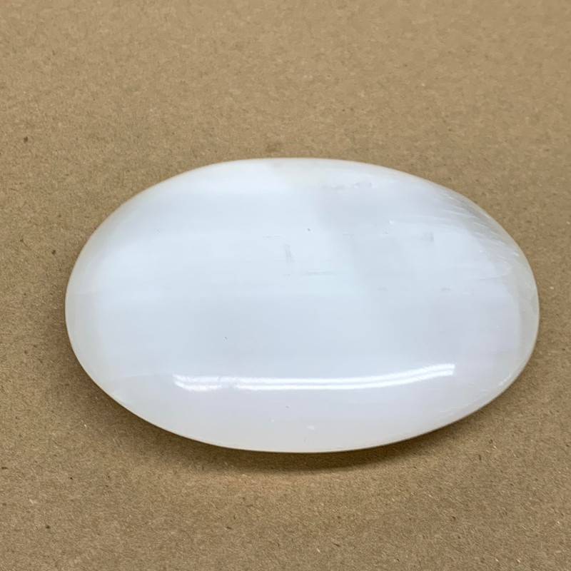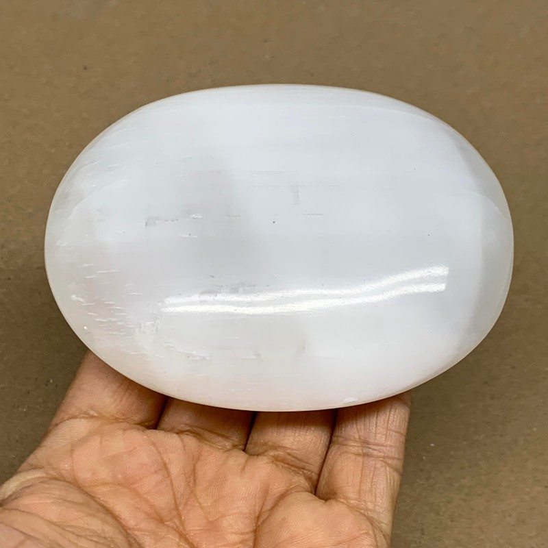 WatanGems 0.61 lbs, 4"x3.2"x1", Large Natural Untreated Selenite Palm-Stone Crystal, palmstone, Reiki Energy, Pillow Shape, Collectible, Handmade, Home Decor, B36118
