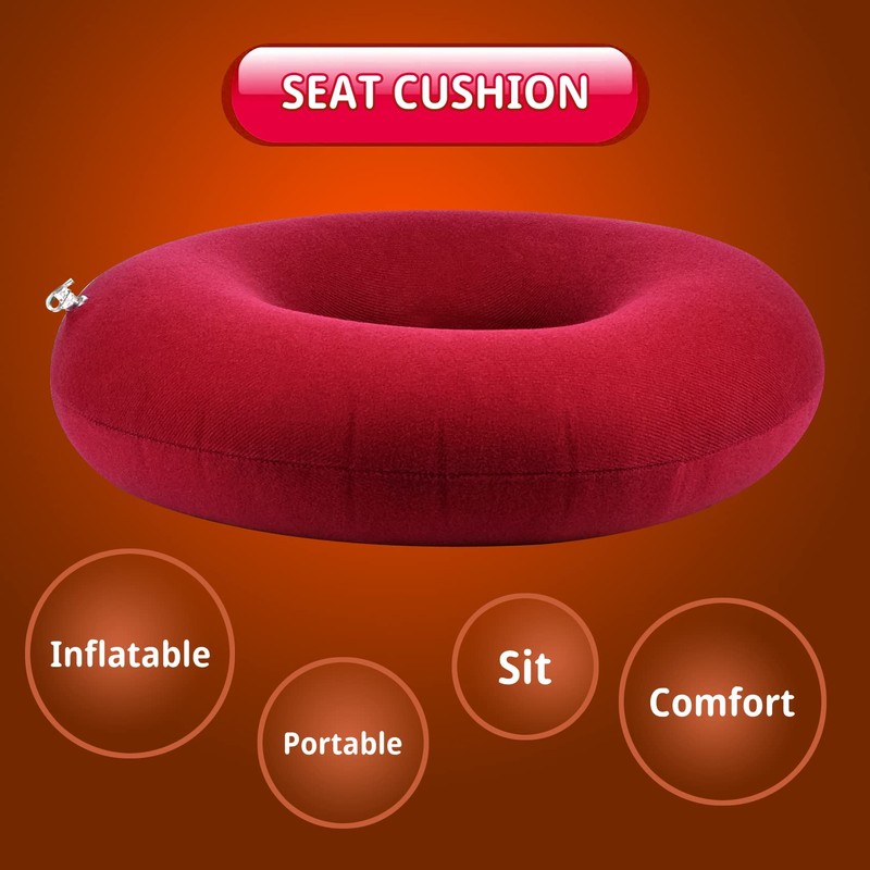 WATAWATA Portable Inflatable Cushion donut cushion pressure cushions for bottoms Donut Shape, Comfortable Sitting, Pressure Relief, Suitable for All (Red)
